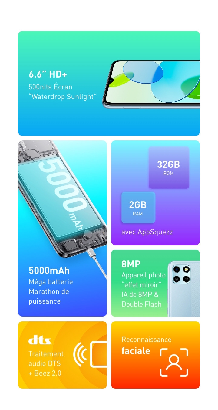 Fiche TechniqueInfinix Smart 6 HD (2GB+32GB)/Ecran 6.6”HD+/5000mAh/Force Black