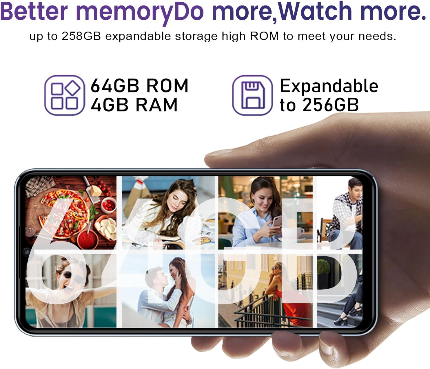4GB+ 64GB/SD-256GB Octa-Core Processor: KXD A07 unlocked smartphone has 4GB RAM and 64GB ROM. Supports inserting a 256GB memory card, you can store downloaded apps on SD card. Combined with octa-core processor, give you a smooth operation experience and a Enough storage space.