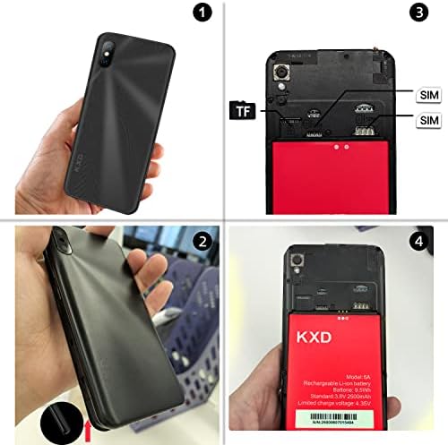 Fiche Technique KXD Téléphone portable Android débloqué 6A 3G Double SIM Batterie 2500 mAh Téléphones mobiles 5,5″ Plein écran 8 Go ROM avec smartphone extensible 64 Go (Noir)
