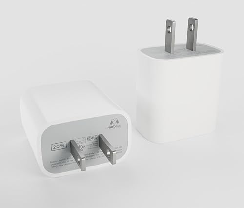 Fiche Technique Mobilus, Lot de 2 chargeurs muraux USB C 20 W, adaptateur de charge rapide pour iPhone 14/14 Pro Max/13/13 Mini/13 Pro Max/12, boîtier de bloc de chargeur rapide PD 20 W, Samsung S23 S22