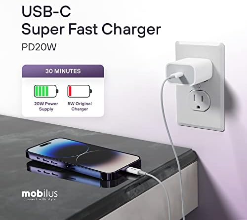 Avis sur Mobilus, Lot de 2 chargeurs muraux USB C 20 W, adaptateur de charge rapide pour iPhone 14/14 Pro Max/13/13 Mini/13 Pro Max/12, boîtier de bloc de chargeur rapide PD 20 W, Samsung S23 S22