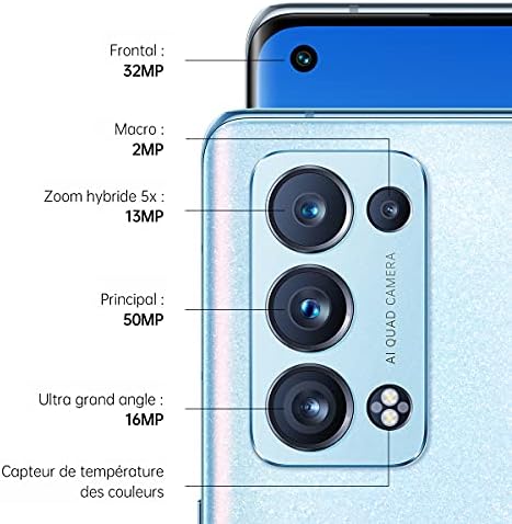 Fiche Technique OPPO Reno 6 PRO 5G CPH2247 Double SIM 12 Go de RAM 256 Go de stockage Snapdragon 870 EU/UK Modèle mondial débloqué en usine – Bleu Artique