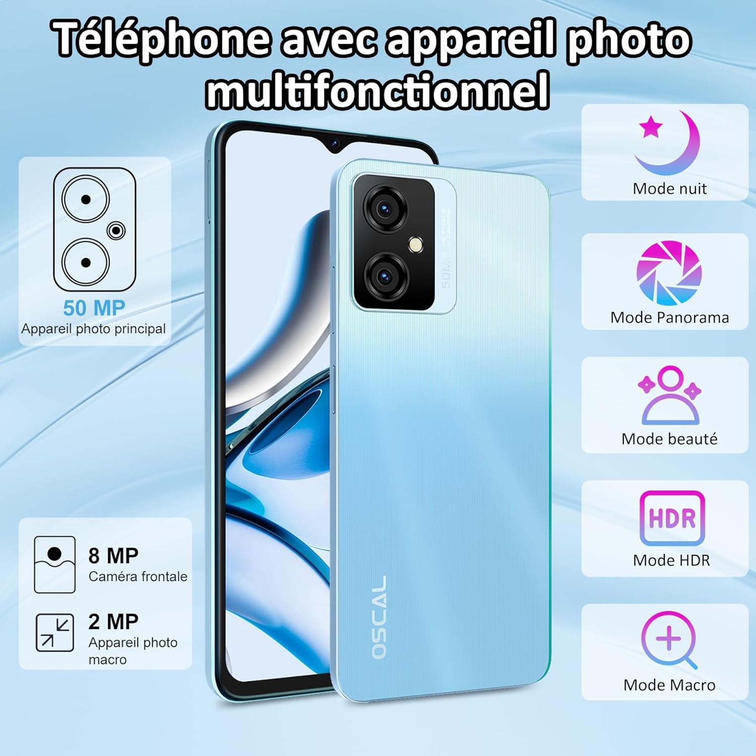 Fiche Technique OSCAL Telephone Portable, Tiger10 Smartphone Pas Cher, 16GO RAM+256Go/1To ROM Extensible, Téléphone Portable avec 6,5″ FHD+ Écran, Caméras 50+8MP, Batterie 5180 mAh, Android 13,Touch ID/OTG au Maroc