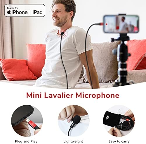 Le Prix PIXEL Microphone cravate pour iPhone iPad, microphone à revers pour smartphone, micro à pince pour enregistrement vidéo, interview, YouTube, Vlog, adapté aux appareils Lightning, certifié Apple MFi (9,8 pieds/3 m)
