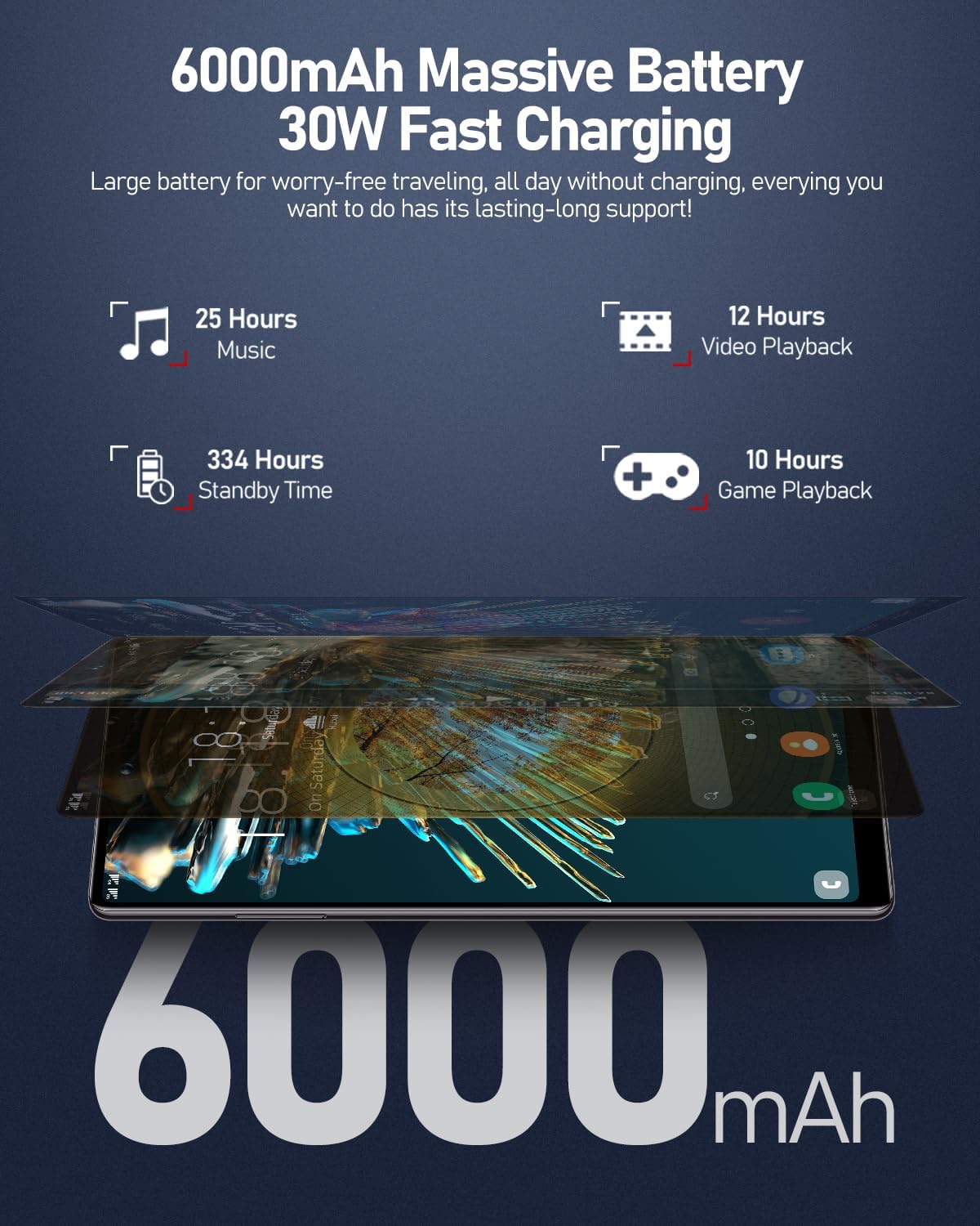 ✅【Batterie longue durée de 6 000 mAh + charge rapide de 30 W】Avec une batterie haute capacité de 6 000 mAh et sa propre technologie d’économie de batterie, le smartphone peut durer en toute confiance une journée complète d’utilisation moyenne à intensive sans charger ! Le smartphone Android peut prendre en charge 16 heures de conversation, 21 heures de musique et 280 heures de veille avec une charge complète. Charge ultra rapide de 30 W, votre téléphone portable sera complètement chargé en une heure !