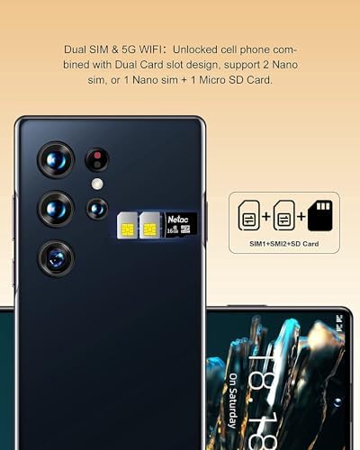 Le Prix SANSHREUNI C21 Smartphone débloqué, 6 + 256 Go Android 13, téléphone portable 6,8″ HD + résolution 3088 x 1440, processeur Octa-Core, appareil photo 24 + 64 MP, batterie 6000 mAh, Face ID/double SIM 5G.