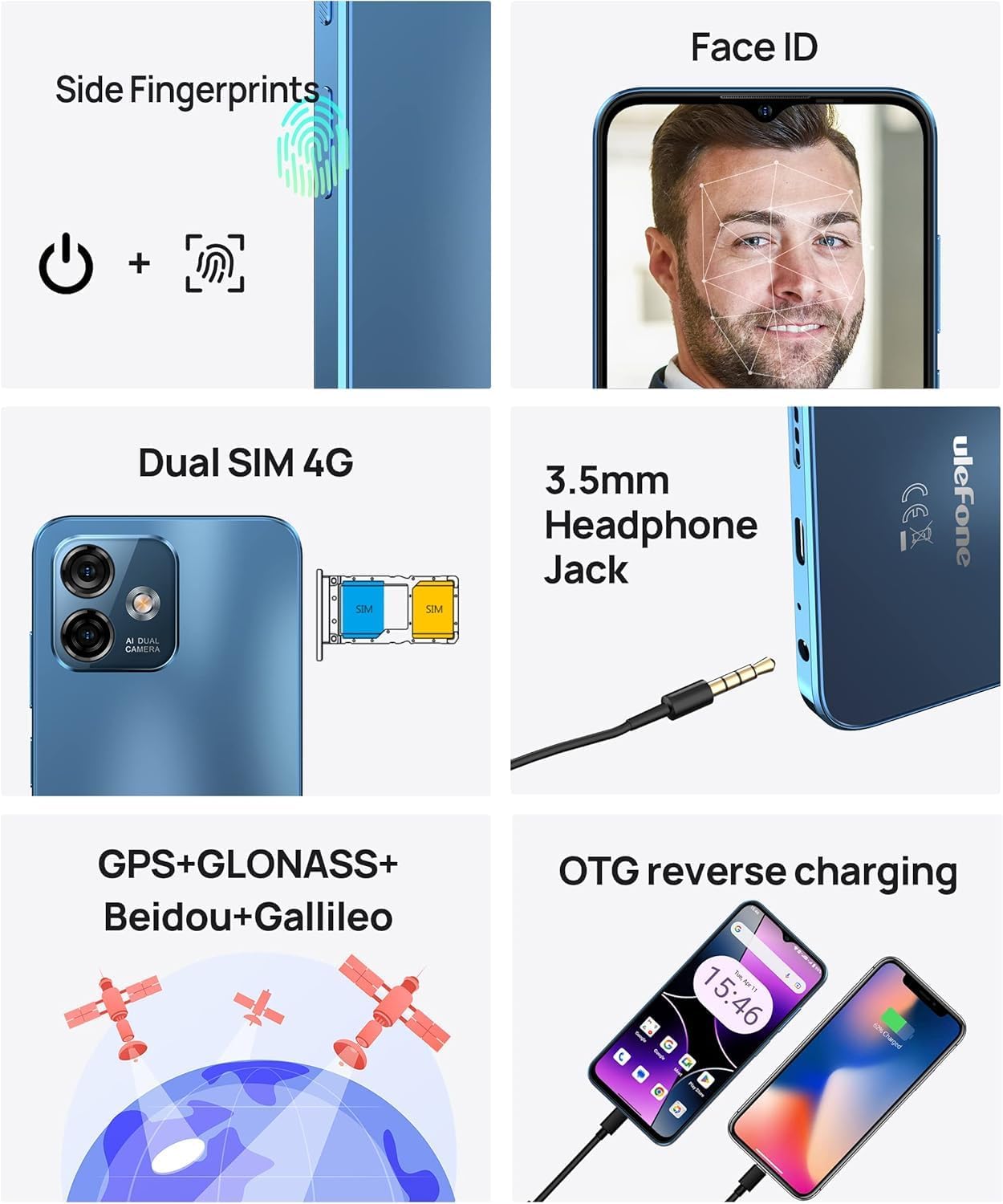【Fingerprint & Face ID】Ulefone Note 16 Pro mobile phone features fingerprint sensor and power button for easy access and quick unlock. It also supports facial unlock, eliminating the need to enter a password or pattern, with a high level of security and accuracy, effectively protecting your privacy and phone security.