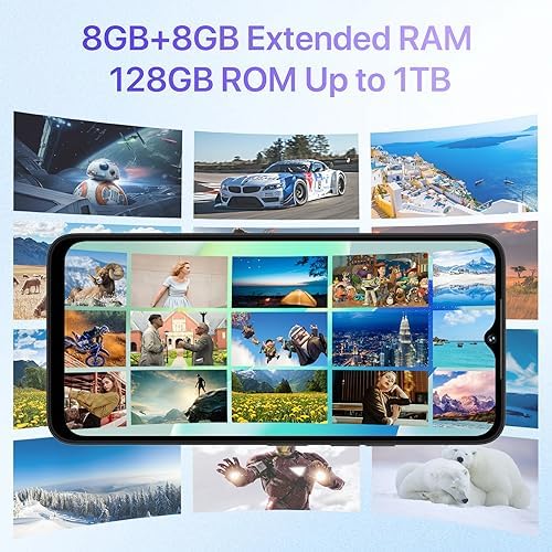 Avis sur UMIDIGI Téléphone portable débloqué, G5 Unisoc T606 8+8 Go + 128 Go Android 13 Smartphone débloqué avec plein écran 6,6″, triple caméra 50 MP + 2 MP + 8 MP AI, batterie 5000 mAh, téléphone portable à charge rapide, noir