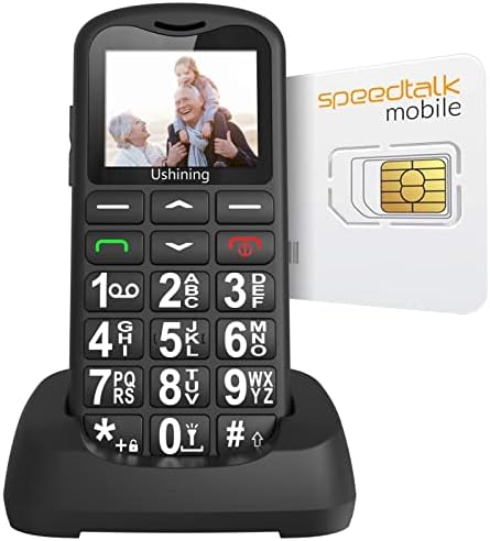 Le Prix USHINING Téléphone portable senior débloqué 4G LTE avec carte SIM Speed Talk pour personnes âgées avec chargeur de type C, appel SOS, téléphone de base pour personnes âgées, téléphone portable débloqué avec station de chargement (noir)