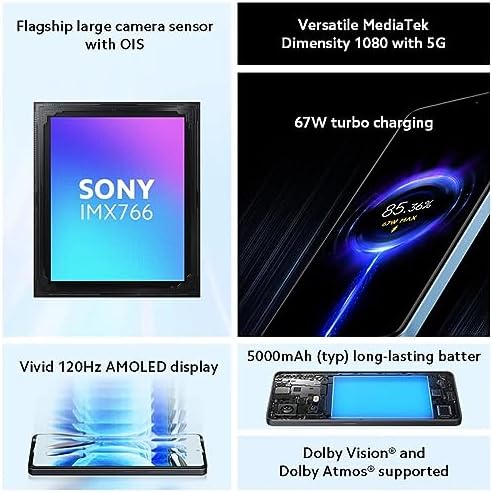 Fiche Technique Xiaomi Redmi Note 12 Pro 5G + 4G (256 Go + 8 Go) Triple caméra 6,67″ 50 MP débloquée en usine (uniquement sur le marché Tmobile/Tello/Mint USA) + supplémentaire (avec chargeur de voiture rapide) (blanc porcelaine)
