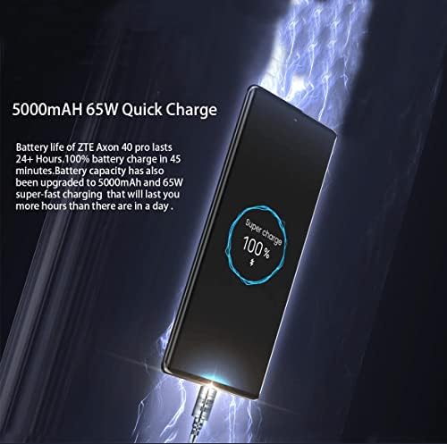 Charge rapide de 5 000 mAh, 65 W : la durée de vie de la batterie du ZTE Axon 40 Pro dure plus de 24 heures. Charge de la batterie à 100 % en 45 minutes. La capacité de la batterie a également été améliorée à 5 000 mAh et une charge ultra-rapide de 65 W qui vous durera plus d’heures qu’en par jour et vous offre une expérience de jeu durable.