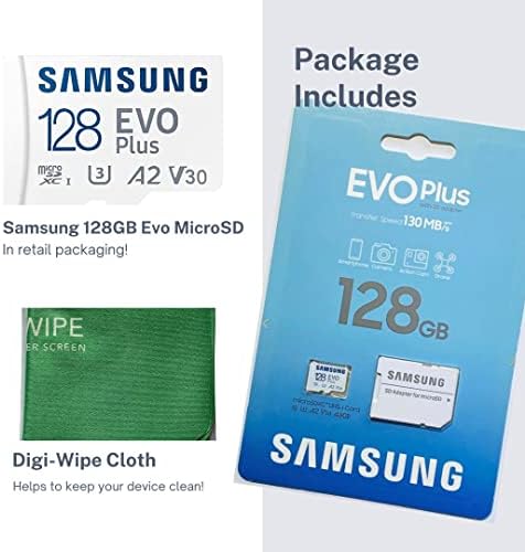 Avis sur Carte mémoire Micro SD Evo Plus 128 Go pour smartphones Samsung Galaxy A03s, A04s, A53 + chiffon de nettoyage Digi Wipe (128 Go)