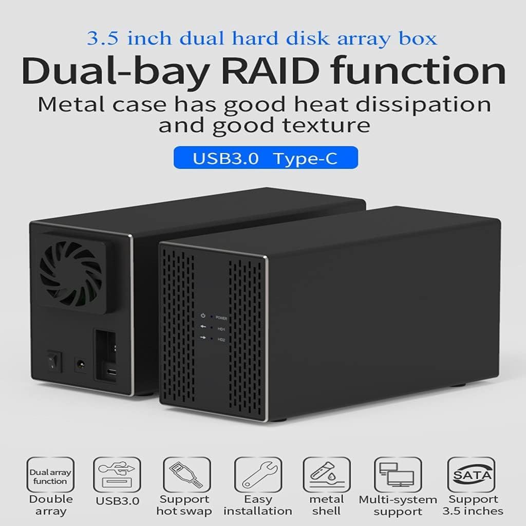 Voici le prix pour acheter Disque Dur Externe Portable, Double matrice de disques durs Raid USB3.0/USB3.1, Double Baie, boîtier de Disque Dur Raid, sauvegarde Automatique des données, matrice de disques durs 3.5 Pouces, USB3.1 au Maroc
