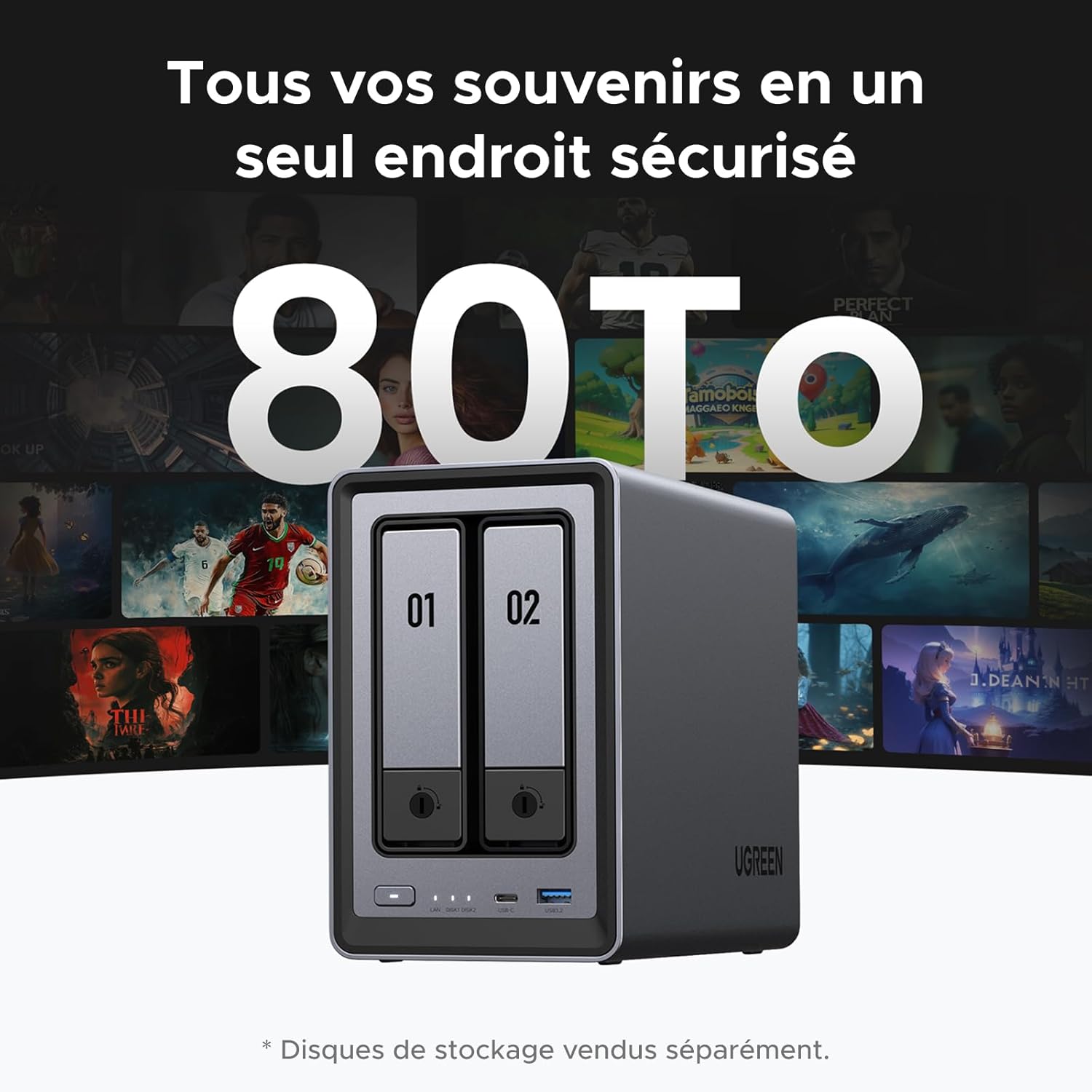 Avis sur UGREEN NASync DXP2800, 2-Bay Desktop NAS, Quad-Core Intel N100 Processor, 8GB DDR5 RAM, 2.5GbE, 2 M.2 NVMe Slots, HDMI 4K, Network Storage (No Disk) (DXP2800)