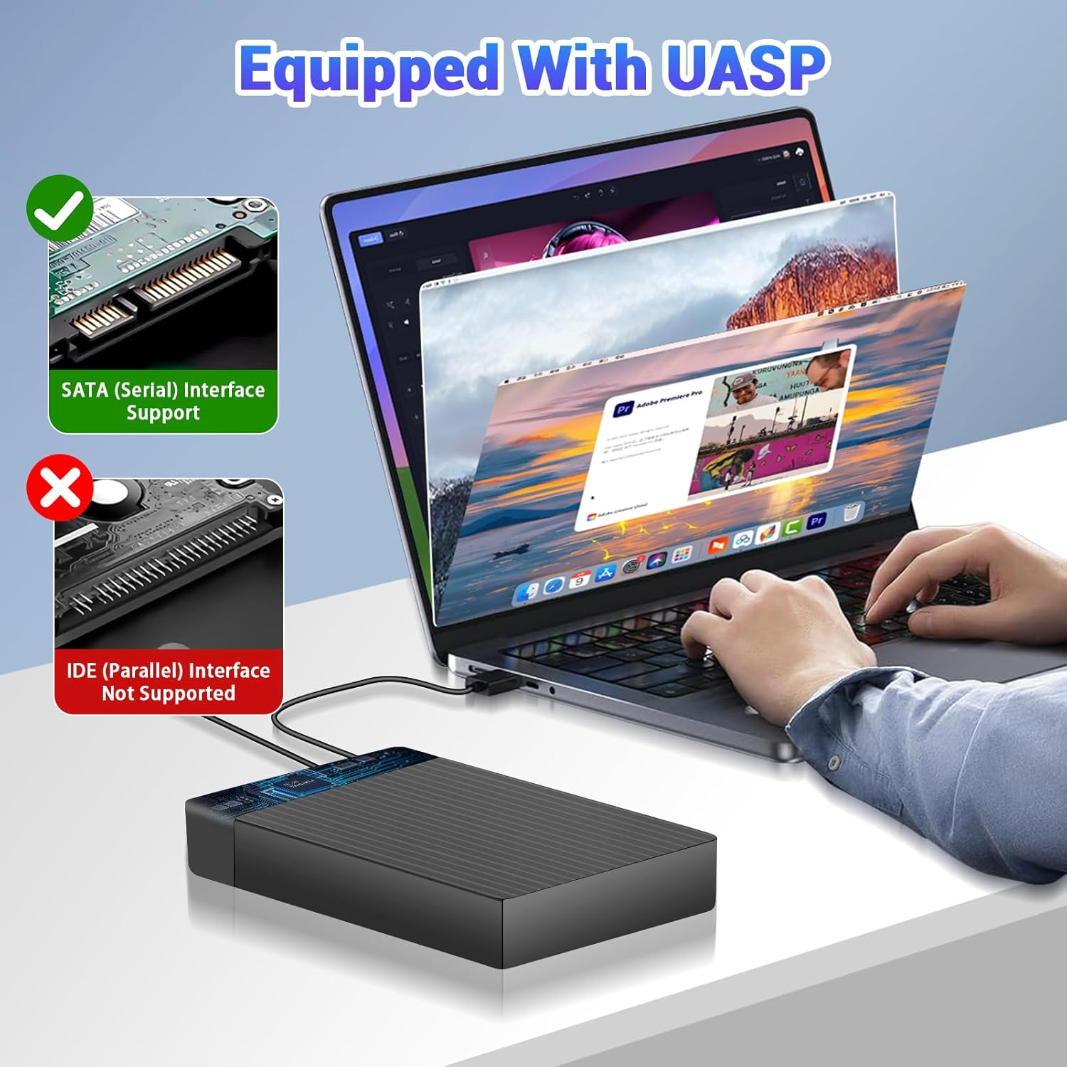 Fast Data Transfer with UASP The USB 3.0 hard drive docking station supports UASP up to 5Gbps. Ideal for fast backups, large file transfers, and efficient data management on hard drive or SSD.