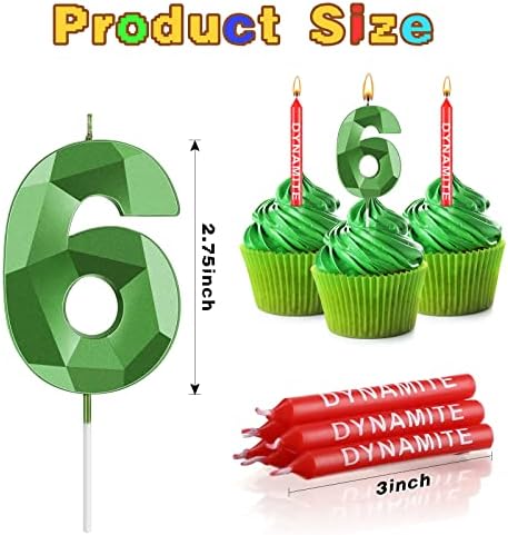 Voici le prix pour acheter 13 Pcs Bougies Dynamite Bougies de gâteau d’anniversaire sur le thème TNT Conception 3D Bougies numérotées vertes Décorations de gâteau TNT pour enfants adultes Mariage Baby Shower Anniversaire Jeu vidéo Fournitures de fête (Numéro 6)