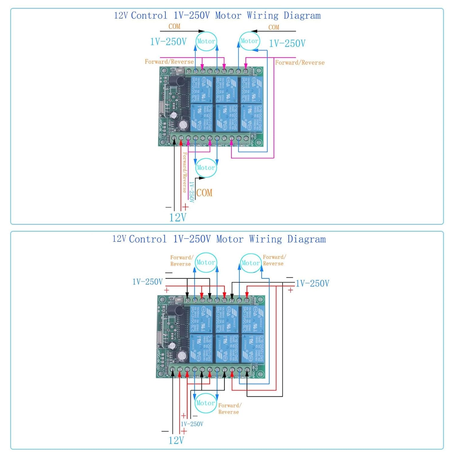 DC 12V/24V Contrôle 1V-250V Diagramme de câblage du moteur