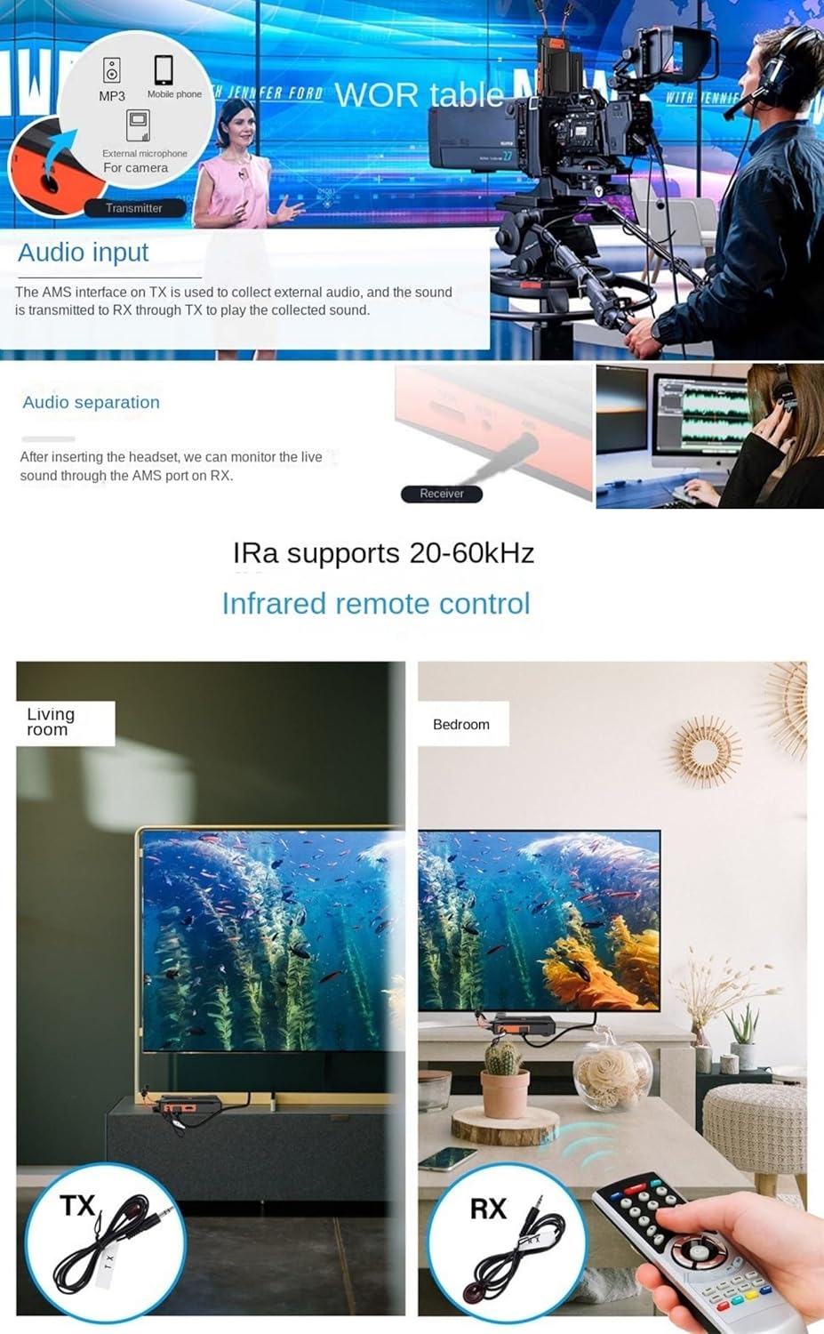 Fiche Technique 5.8G 300M transmetteur et récepteur HD sans Fil, 1080P@60HZ HDMI Un à Plusieurs émetteur et récepteur Live Video Extender pour PS4 DVD Batterie de caméra d’ordinateur Portable (TX+RX) au Maroc