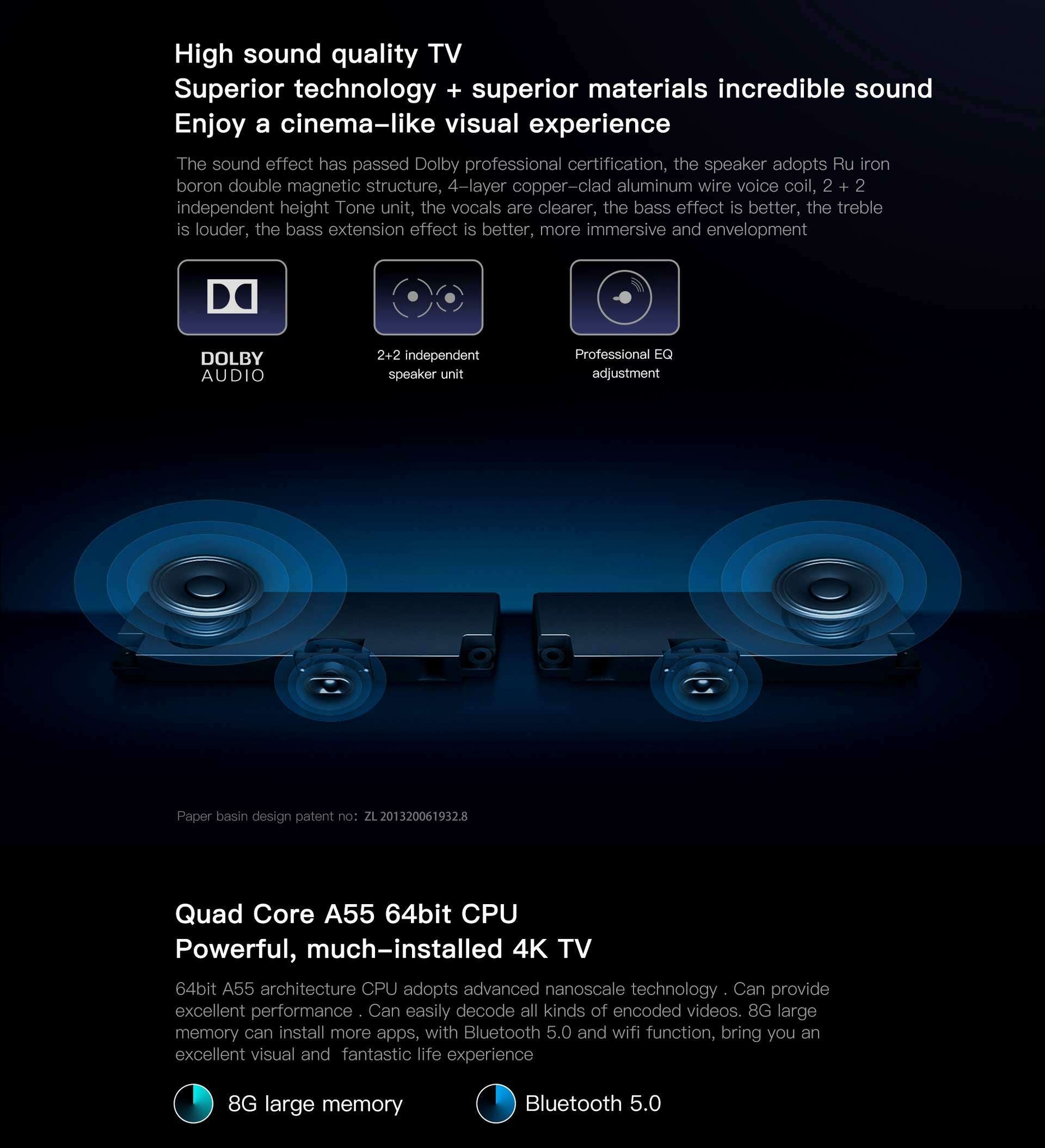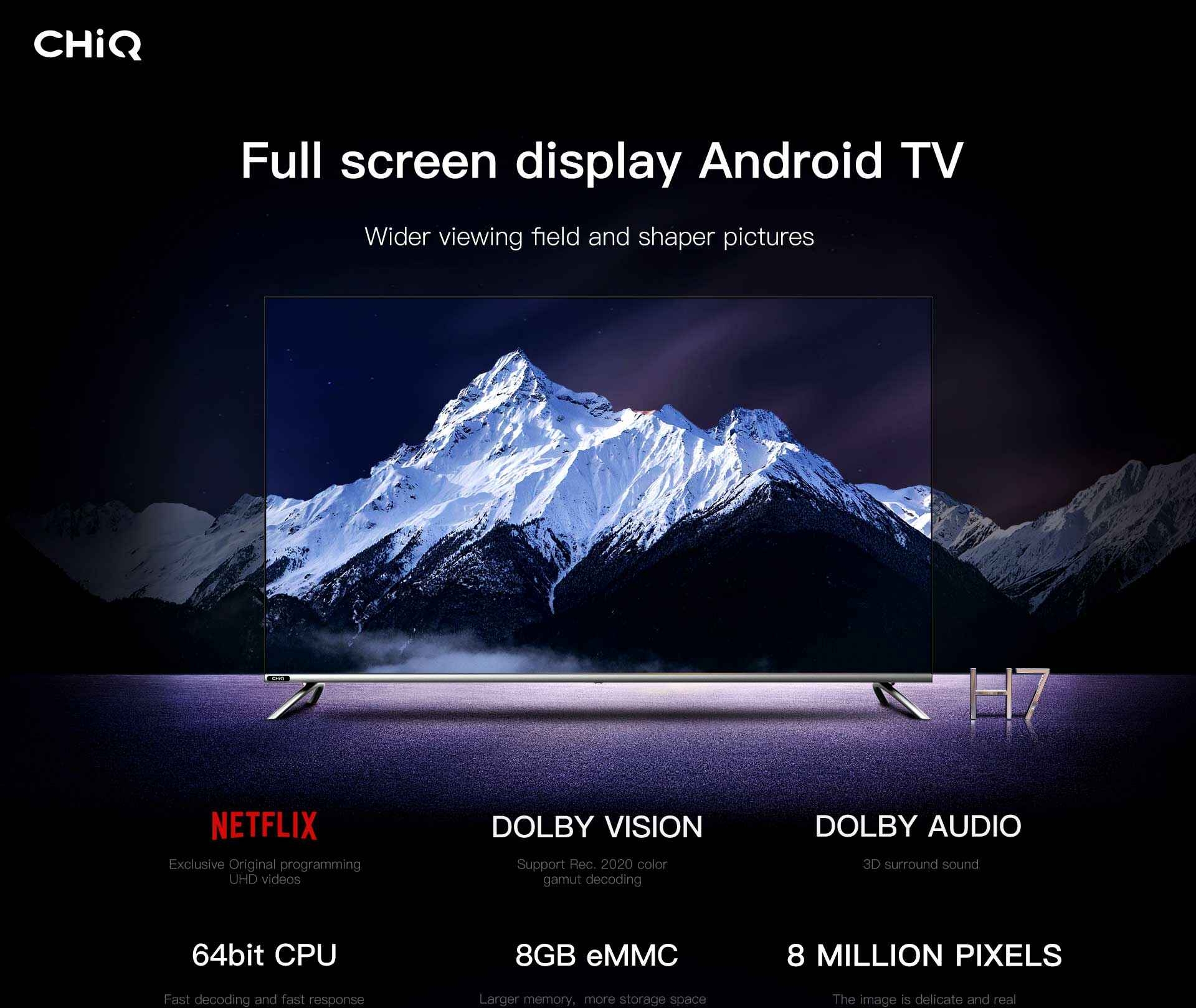 Fiche TechniqueCHIQ Smart TV 50" Android 11.0 UHD 4K – Bluetooth 5.0- Récepteur Intégré- HDR – Dolby Audio