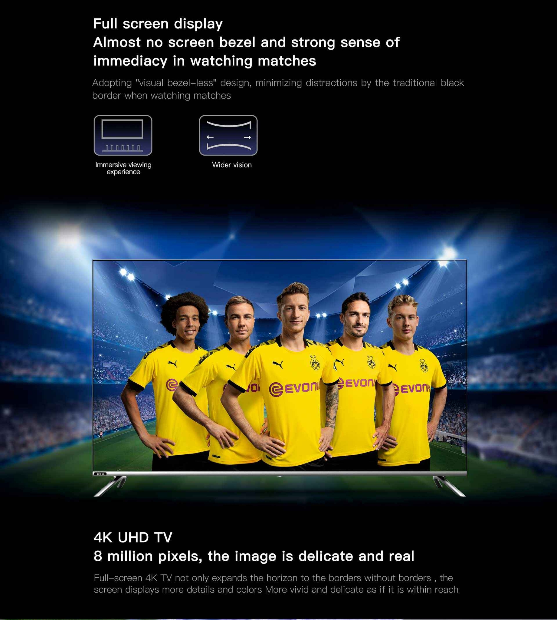 CHiQ est fièrement partenaire du club BVB basé à Dortmund en Allemagne. Le Borussia Dortmund a été fondé en 1909 à Dortmund. Le BVB est le deuxième plus grand club de sport en Allemagne. En sponsorisant le club BVB, CHiQ montre sa stratégie à long terme pour développer l’activité de la marque en Europe, avec ses riches gammes de téléviseurs, de réfrigérateurs, etc.