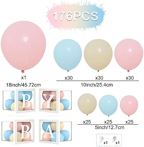 Fiche Technique Décorations de fête DIY pour révéler le genre – Kit d’arche de ballons roses et bleus 176 pièces, boîte pour bébé avec lettres (bébé) pour décoration de révélation du sexe de bébé, fournitures de fête, fête prénatale garçon ou fille, toile de fond générique