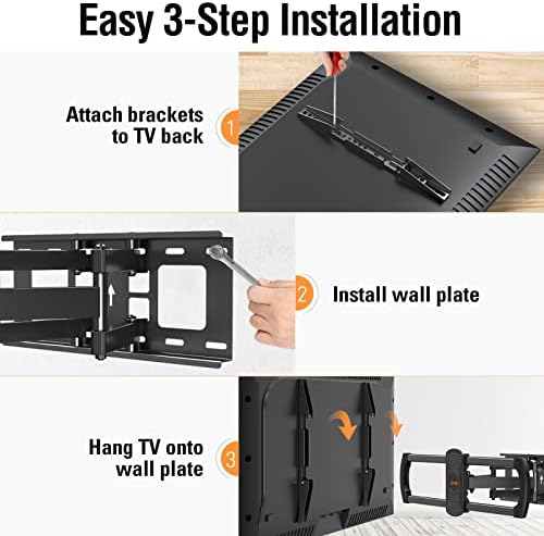 Solide comme un roc – Le support TV articulé conçu avec une structure à 6 bras articulés garantit une résistance fiable et vous offre un angle de pivotement suffisant. Chaque support TV a été testé pour garantir la sécurité de votre téléviseur et de votre famille.