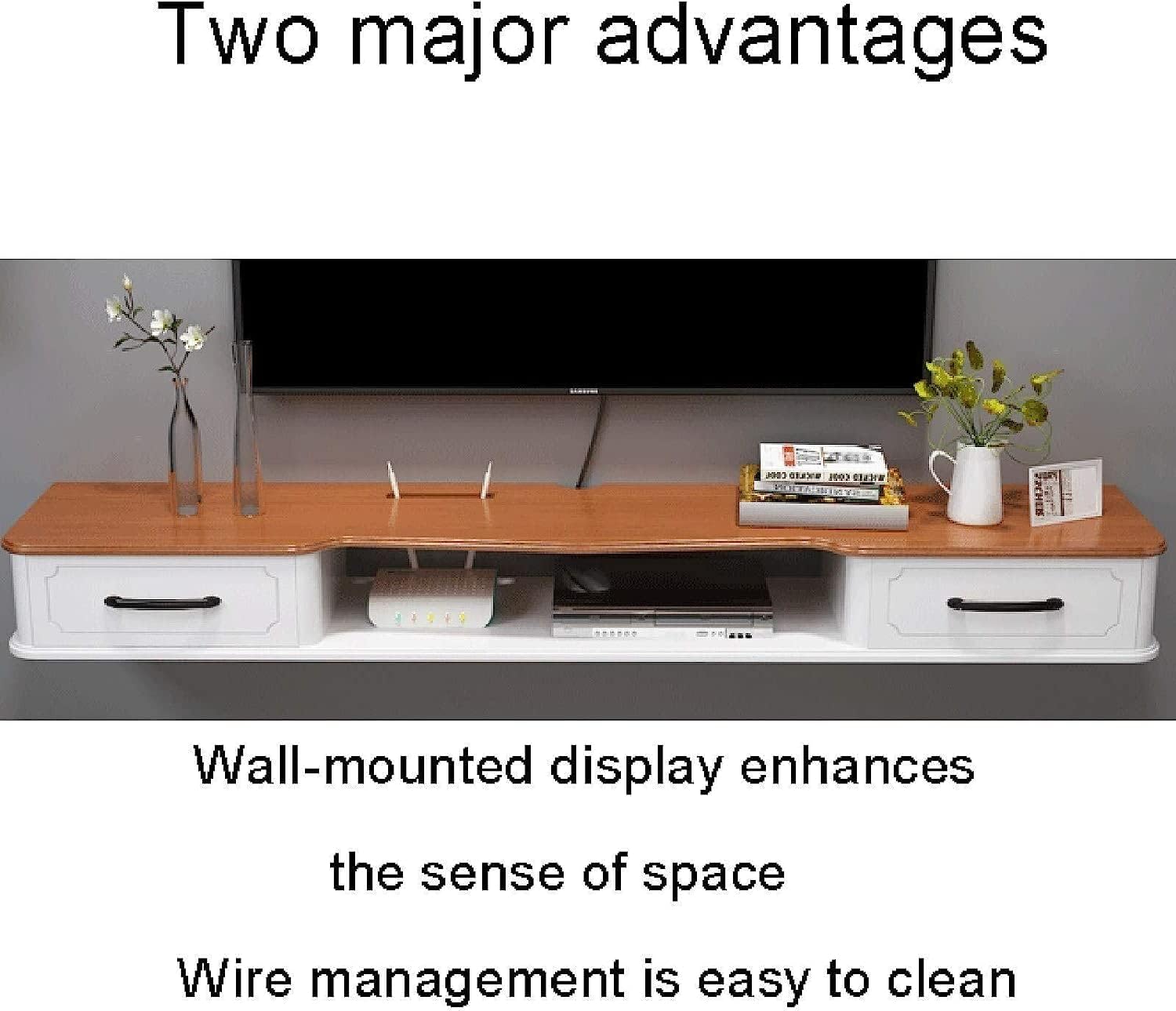 Gain de place : la conception de l’étagère flottante à montage mural ne prend pas beaucoup de place, offre un stockage sûr pour une variété d’articles, des lecteurs DVD, des enregistreurs vidéo numériques, des enregistreurs HD, des boîtiers de télévision par câble, des composants AV appropriés.