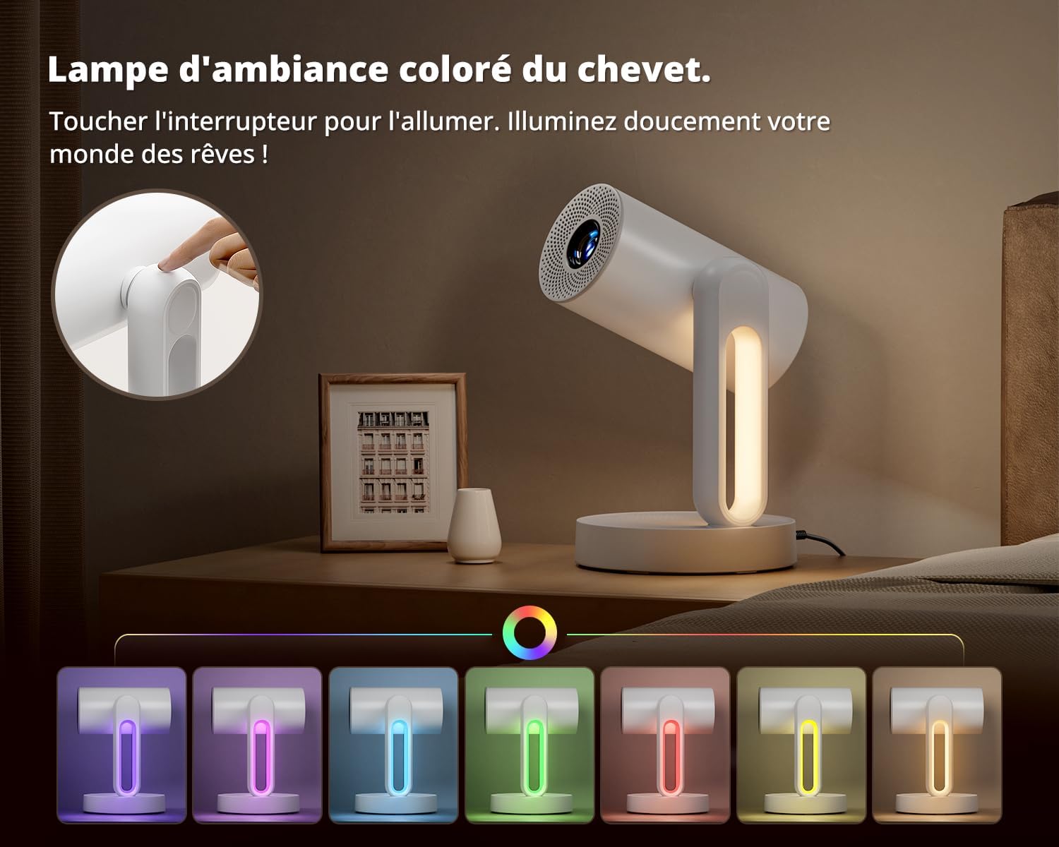 【 Veilleuse tactile】: La veilleuse du projecteur android a un design tactile, vous pouvez allumer la veilleuse et régler la couleur et la luminosité de la lumière en touchant la rainure du doigt sur le dessus. Elle est facile à utiliser dans une pièce sombre. En tant que veilleuse, elle fournit beaucoup de lumière lorsque vous cherchez des objets la nuit. En tant que lampe de chambre, elle peut créer une atmosphère chaleureuse et relaxante.