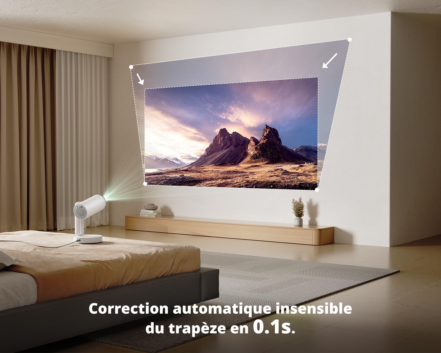 【 Rotation de 140°, Réglage Auto de L’écran & Recherche Vocale】: ETOE pico projecteur peut être réorienté librement, et le projecteur analyse l’image projetée et corrige automatiquement la forme de l’image pour une meilleure expérience visuelle. En outre, la fonction “Hey Google” vous permet d’accéder instantanément à vos chaînes et applications préférées par la voix. L’installation est si simple que même les personnes les plus inexpérimentées en mécanique peuvent s’en servir immédiatement.