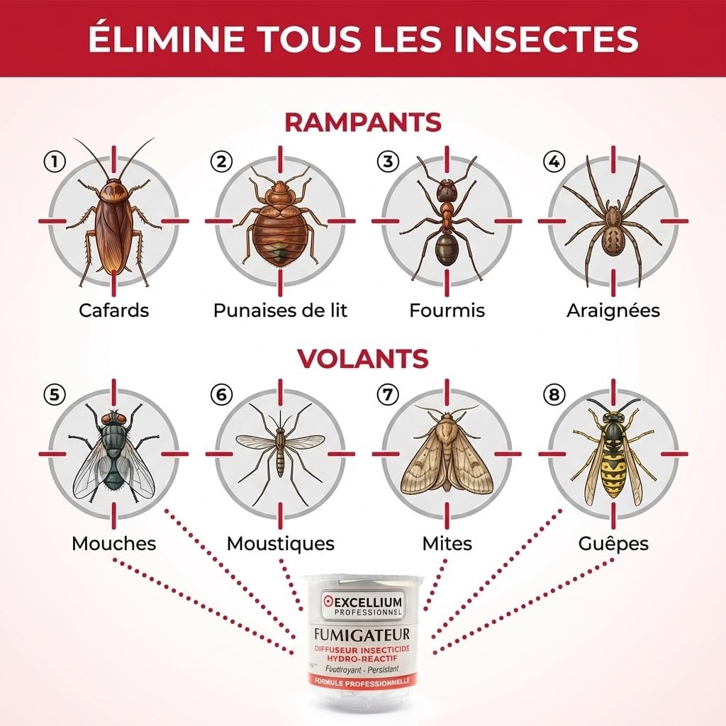 Avis sur EXCELLIUM PROFESSIONNEL Hydro-Reactive Insecticide Fumigator 10 g | Anti Mosquito Bugs | 25-50 m²
