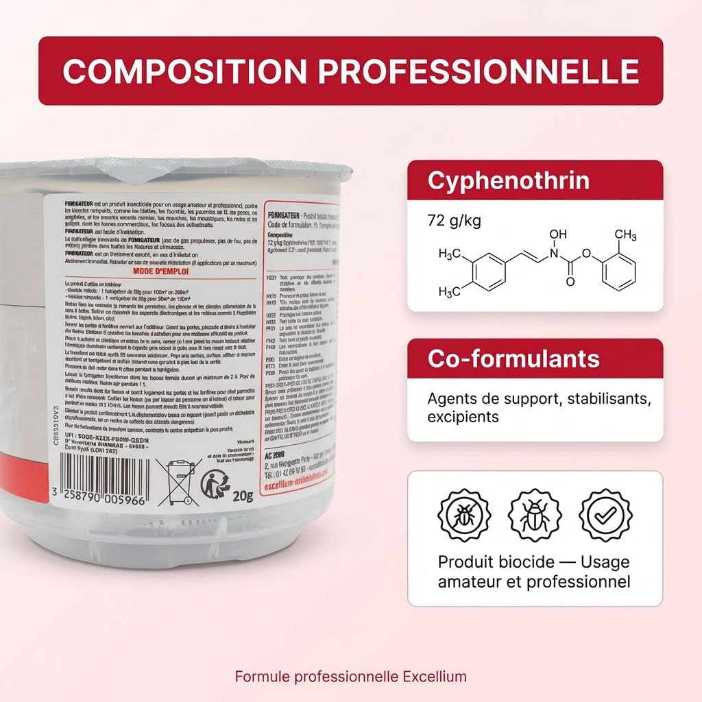 Fiche Technique EXCELLIUM PROFESSIONNEL Hydro-Reactive Insecticide Fumigator 10 g | Anti Mosquito Bugs | 25-50 m² au Maroc