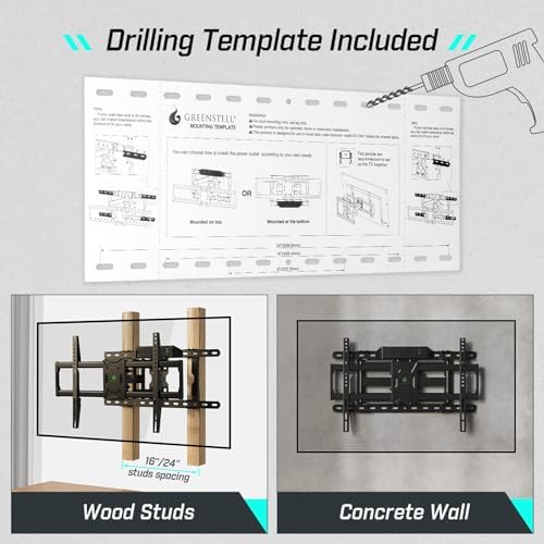 Avis sur Greenstell TV Mount with Power Outlet, Full Motion Wall Mount for 47″-84″ TVs, Swivel, Tilt and Extension Bracket with Dual Articulating Arms, Max VESA 600x400mm, Holds up to 132lbs