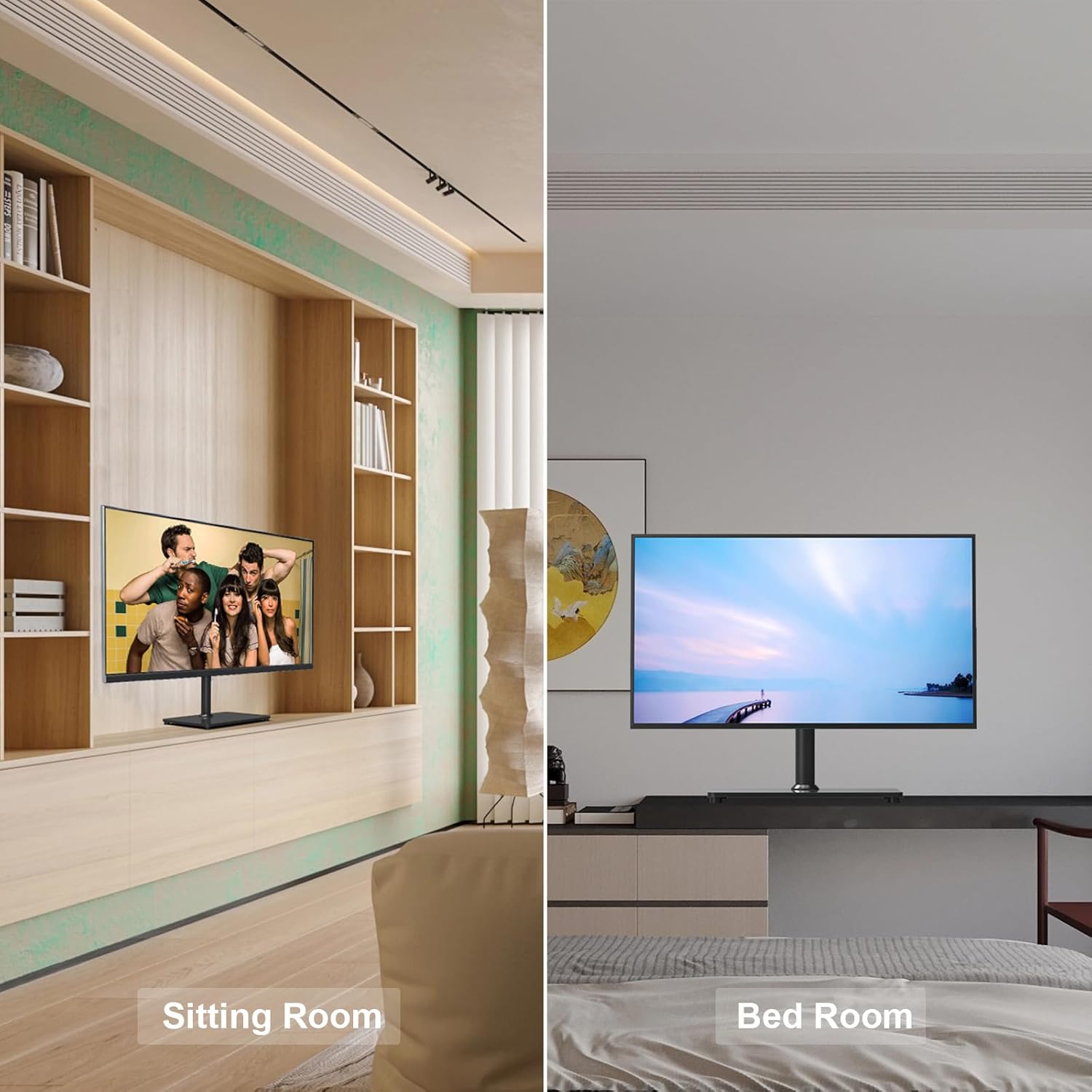 Adjustable Height Angle: This TV stand offers +/- 90° left and right rotation, +/- 60° up-down tilt and 360° horizontal rotation for the best viewing experience. (The height can be raised and lowered)