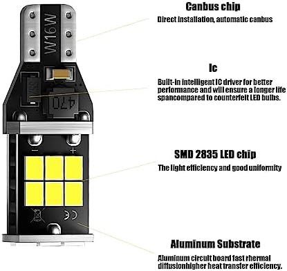 gunhunt Lot de 2 feux d’éclairage de voiture, feu de recul T15, ampoule LED super lumineuse, décodage haute puissance, ampoules à puce 3535, extrêmement super lumineuses, remplacement d’ampoules universelles (lumière blanche)