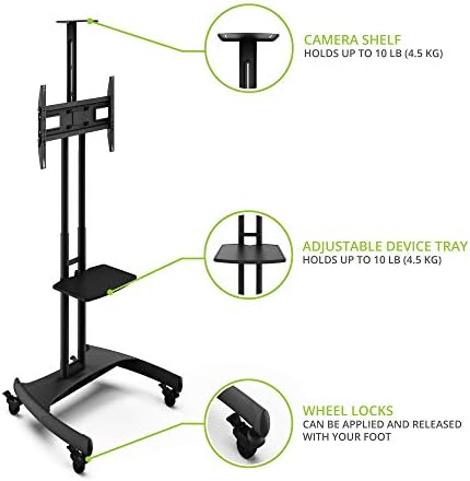 Le Prix Kanto MTM65PL Meuble TV mobile réglable en hauteur avec étagère réglable pour téléviseurs de 37 à 65 pouces | Supporte jusqu’à 80 lb (36 kg) Total | Gestion des câbles intégrée | Noir