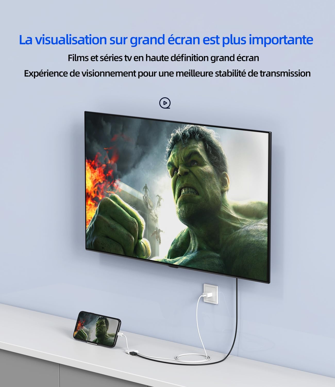 【Plug & Play, Enjoy Big Screen】With this HDMI cable for iPhone, you can easily connect your phone/tablet to an HDTV, monitor or projector with HDMI input. It is an ideal solution for watching movies, TV shows, conferences, presentations, games, video calls or for expanding the workspace by connecting your devices to a large screen.