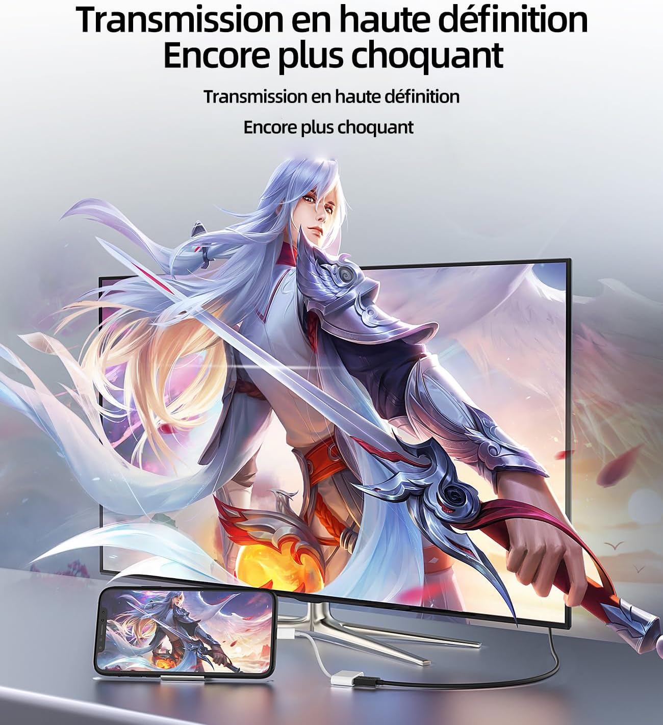 Fiche Technique Lightning Hdmi Adapter (2 in 1) Apple Tv 4K Cable Projector Charger Jack Cable Accessory MFI Certified Iphone Plug Adapter for 14 13 12 11 Pro Max Mini 7 8 Plus X SE XS XR iPad Air Screen with Cord au Maroc