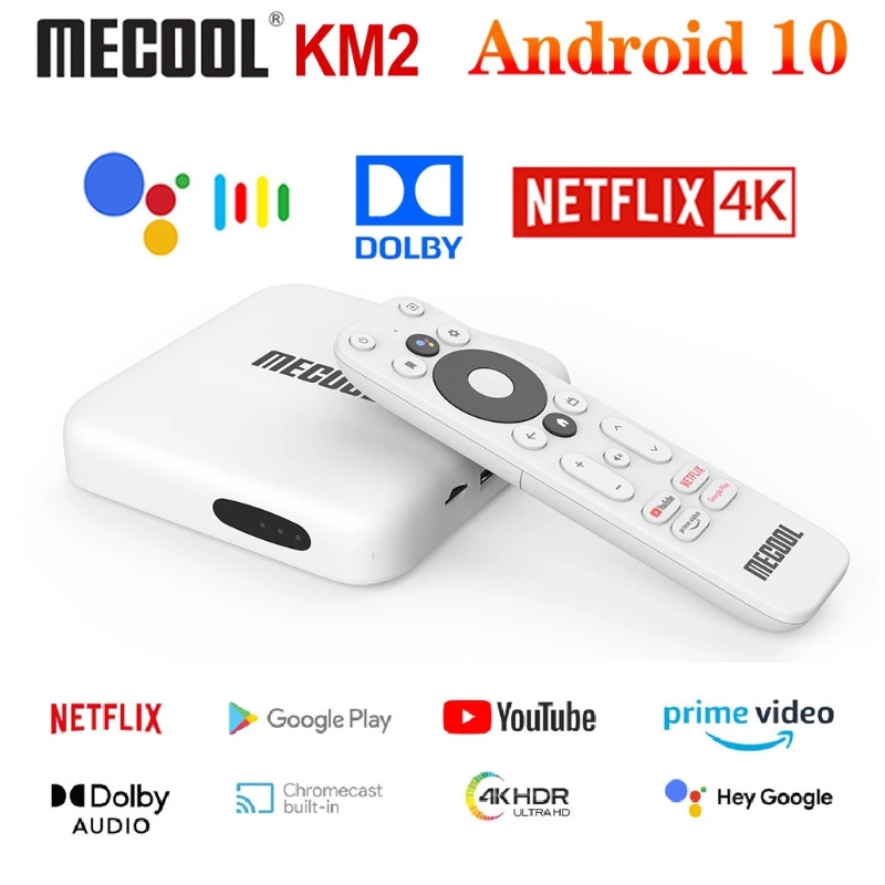 Mecool KM2 est un boîtier TV certifié Google et fonctionne sur Android TV 10 OS. Mecool KM2 prend en charge l’assistant Google et Chromecast intégré. En outre, Mecool KM2 possède les certifications les plus importantes des principaux vendeurs : Google, Netflix et PrimeVideo.