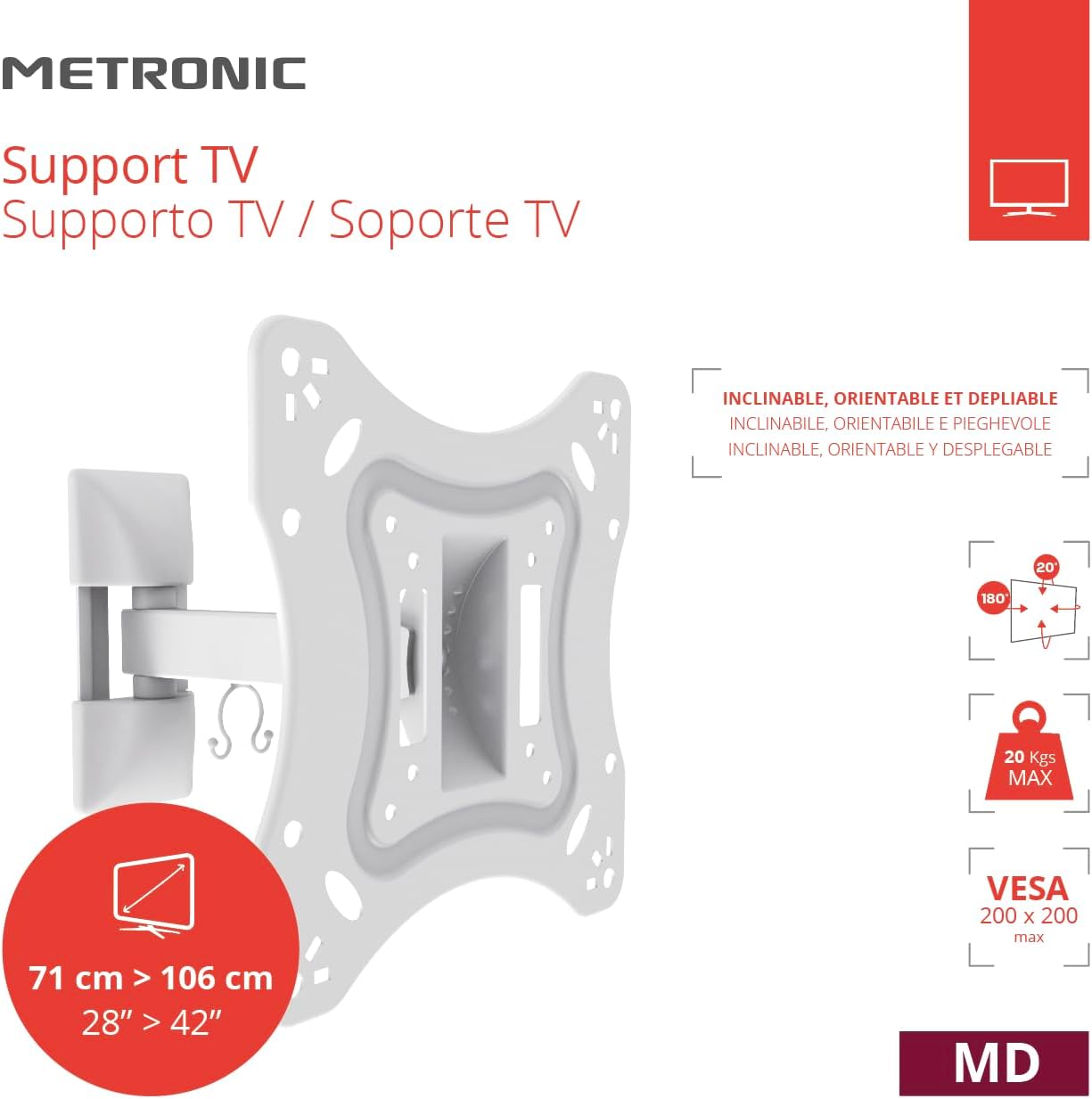Voici le prix pour acheter Metronic 451059 Wall Mount with Tilting Arm, White au Maroc