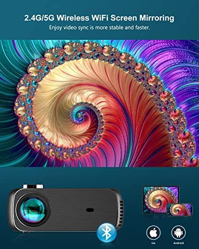 【Fonction double WiFi 2,4G/5G】 La double connexion WiFi 2,4G/5G intégrée et Bluetooth 5.2 du projecteur de film permet une transmission à grande vitesse à partir d’appareils multimédias. Les haut-parleurs haute fidélité HI-FI peuvent profiter d’un son surround stéréo à 360 °, vous offrant une expérience visuelle de niveau cinéma.