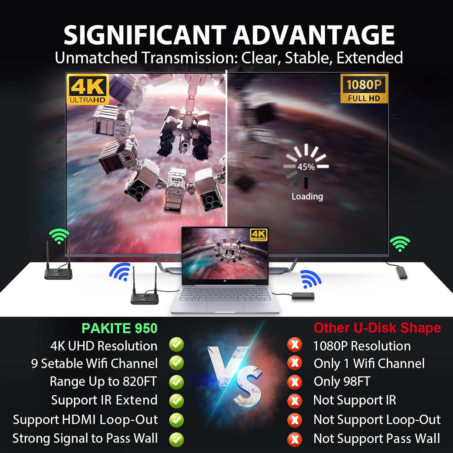 Émetteur et récepteur sans fil HDMI PAKITE 4K – Expérience HD sans fil inégalée.
