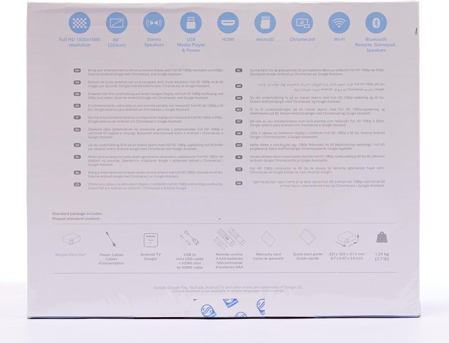 Fiche Technique Philips NeoPix Ultra One+, projecteur True Full HD intégrant Une clé Android TV et Chromecast, connecteur HDMI au Maroc