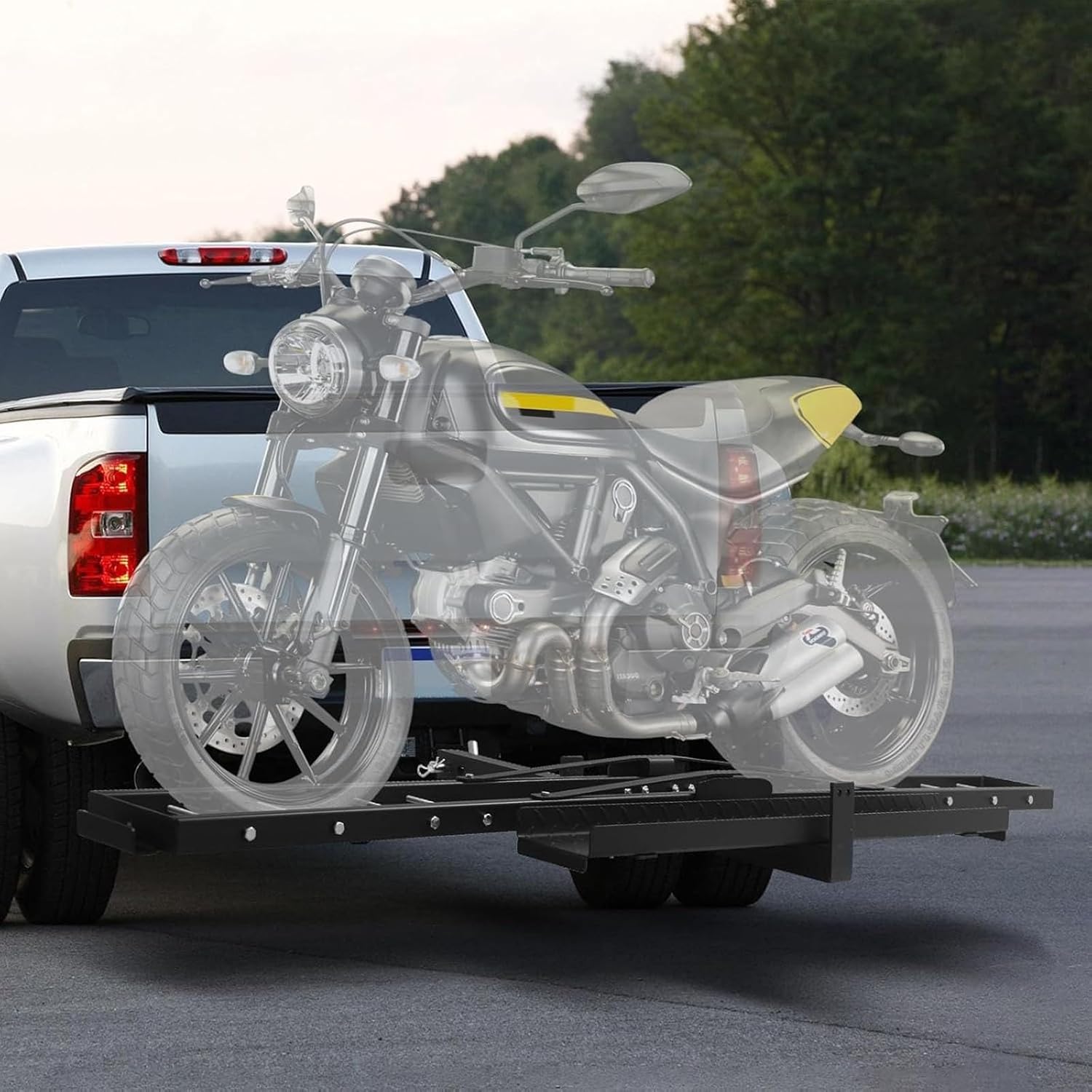 Fiche Technique Porte-Moto pour Attelage, Porte-Moto Tout-Terrain, Récepteur de 5 Cm/2″, avec Rampe de Chargement, Dispositif de Verrouillage Anti-basculement, Support de Moto en Acier Robuste pour Attelage au Maroc