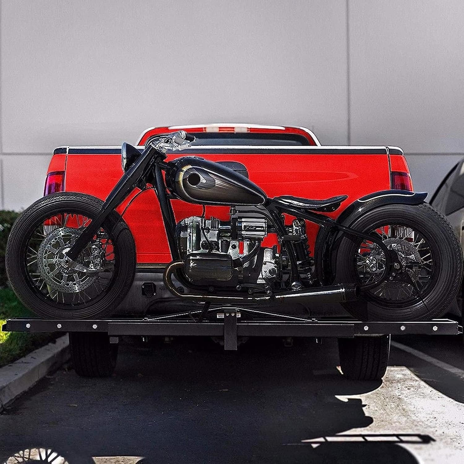 【Transport facile】Conçu pour faciliter le transport de la moto par les motards. Peut être monté sur l’attelage de remorquage du véhicule, ce qui permet de placer la moto directement dessus et de la fixer au véhicule.