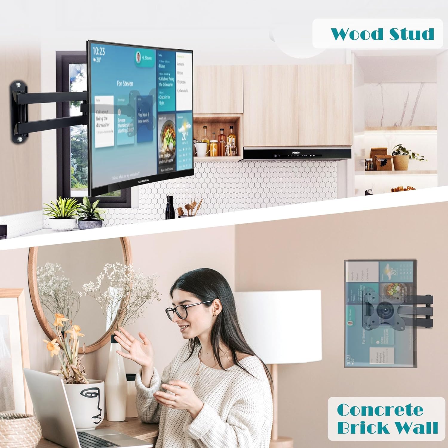 FACILE À INSTALLER: Ce support mural pour moniteur est livré avec toutes les vis dont vous avez besoin, en 10 minutes, vous obtiendrez un tout nouvel appareil maintenu par un petit support mural stable pour téléviseur. Il peut être installé sur un montant en bois/béton/mur de brique, mais NE PAS monter uniquement sur des cloisons sèches. Les ancrages sont destinés uniquement aux murs en béton/brique.
