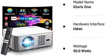 Fiche Technique Prise en charge 4K Android TV 10.0 Projecteur 5G WiFi Bluetooth natif 1080P, CIBEST Full-Sealed Optical Engine Home Movie Projecteur FHD avec Netflix/Prime Video intégré, plus de 8000 applications, mise au point automatique, son stéréo