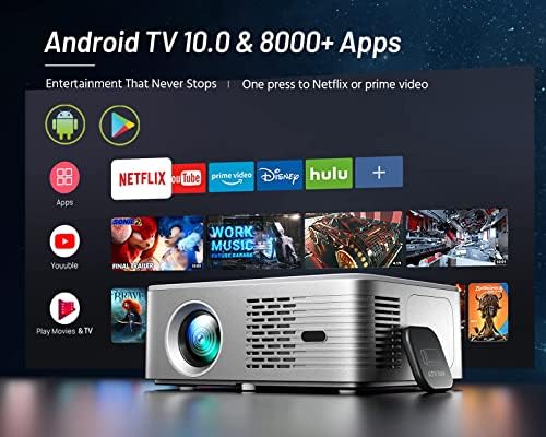 Voici le prix pour acheter Prise en charge 4K Android TV 10.0 Projecteur 5G WiFi Bluetooth natif 1080P, CIBEST Full-Sealed Optical Engine Home Movie Projecteur FHD avec Netflix/Prime Video intégré, plus de 8000 applications, mise au point automatique, son stéréo