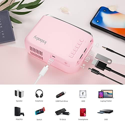 Le Prix Projecteur portable, projecteur d’extérieur, mini projecteur vidéo esthétique LED pour films portables en extérieur compatible avec HDMI, USB, ordinateur portable, clé TV, téléphone iOS et Android, rose