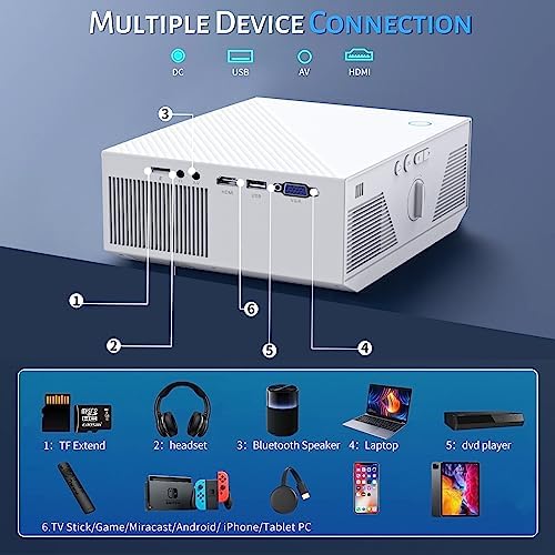 Avis sur Projector with WiFi and Bluetooth, Native 1080P 4K Support Portable Outdoor Video Mini Projectors 12000L with Screen and Tripod for Home Theater Compatible with HDMI,USB,VGA,AV,iOS and Android Phone