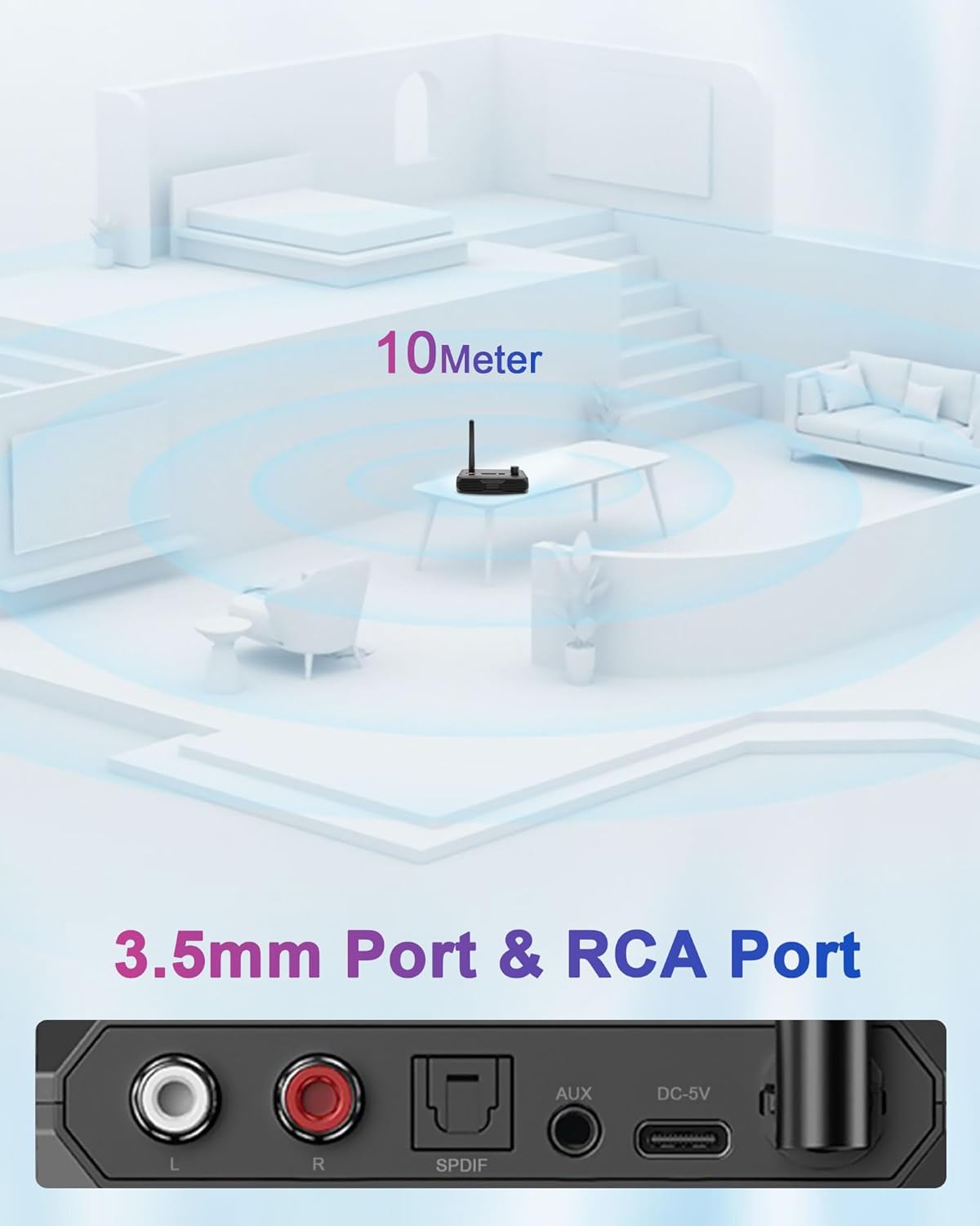 Transmission stable de 10 m : avec un amplificateur de signal intégré, cet adaptateur garantit une transmission audio stable et non interrompue dans un rayon de 10 mètres, de sorte que vous pouvez vous déplacer librement dans votre maison sans perdre votre connexion. Experience lag-free, son de haute qualité dans chaque coin de votre pièce